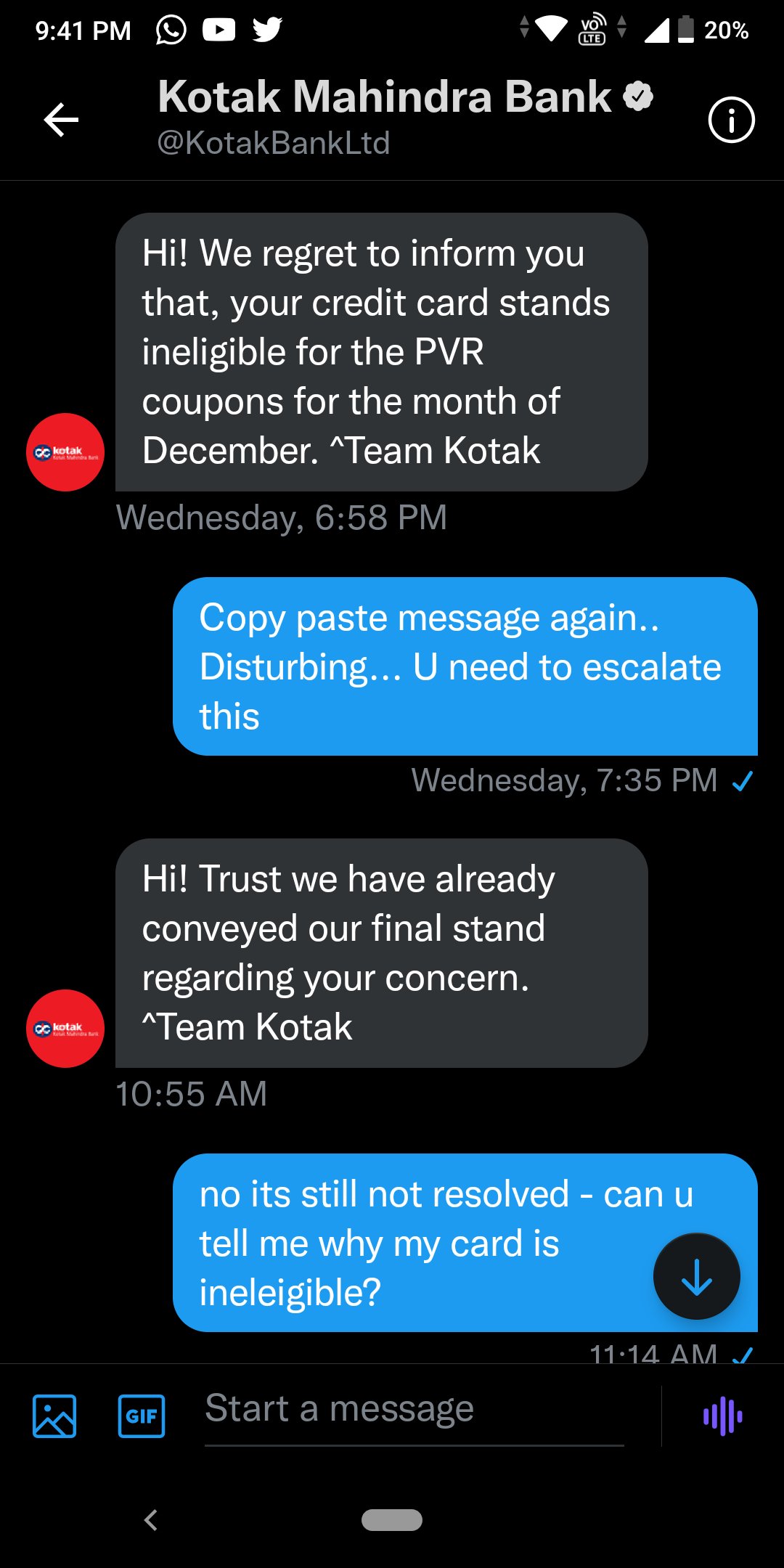 Kotak PVR Gold Credit Card - Check Features, Offers & Apply Online You can claim the code by sending an SMS to 5676788, which reads PVRKCC the first 3 letters of the particular month. You can also get the coupon code through the net banking feature of Kotak Mahindra Bank. After entering your credentials, click on the 'Credit Card' option and choose 'PVR Coupon Claim' tab.