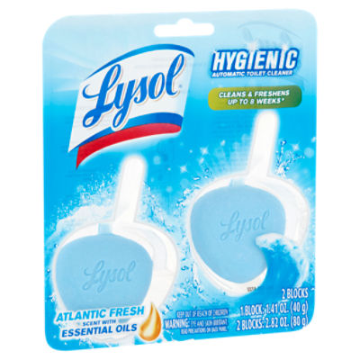 Lysol Automatic Toilet Bowl Cleaner More Info. Lysol Automatic Toilet Bowl Cleaner. Hangs on the inside of the toilet bowl to help you maintain your toilet between deep cleaning. Helps clean and freshen automatically with every flush. Fights toilet rings and helps to prevent stains. Help maintain a clean, fresh toilet between deep cleans. Lasts up to 8 weeks.